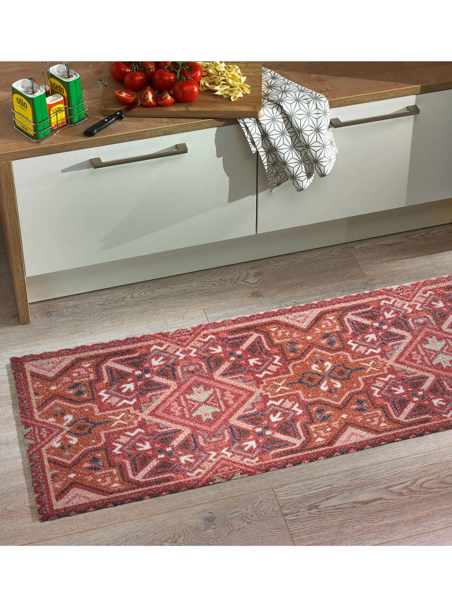 Mögen Sie es lieber süß oder säuerlich, lieber mild-ölig oder fruchtig-scharf. In der Küche entscheidet allein Ihr Geschmack – die nötigen Zutaten halten wir auf jeden Fall für Sie bereit: schicke Küchenläufer aus stark gezwirntem Kräuselgarn. Flor 100% Polyamid. Hohes Poleinsatzgewicht von ca. 600 g pro m². Pflegeleicht und äußerst robust. PVC frei.