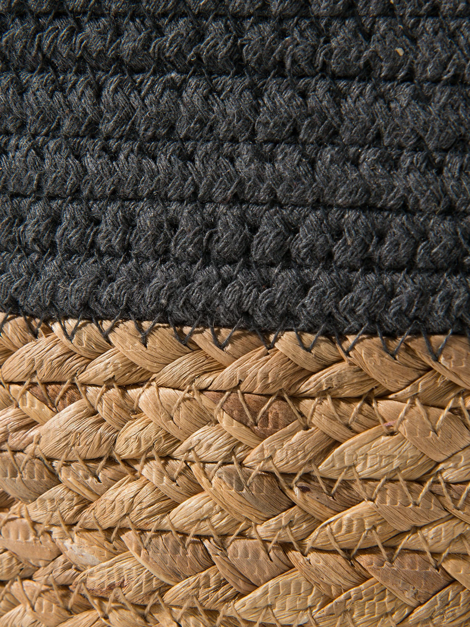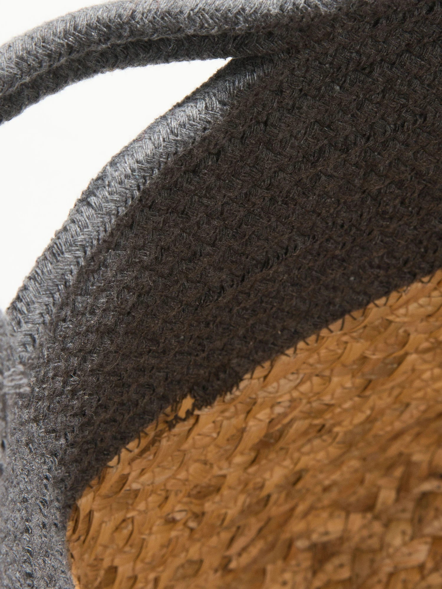 BANDRA ist ein formschöner Korb aus zwei Materialien. Oben besteht er aus Baumwolle, unten aus Wasserhyazinthen-Geflecht. Mit Henkeln.