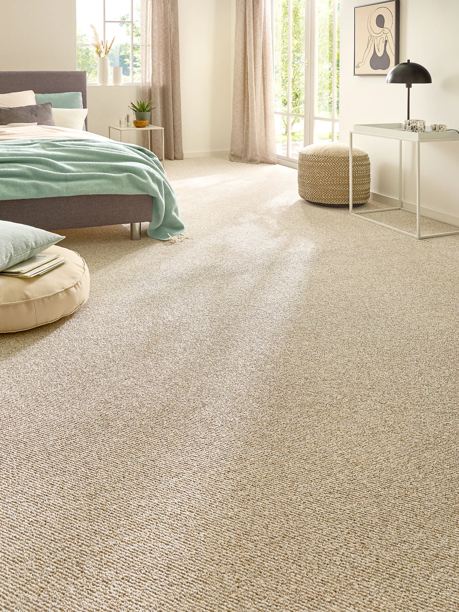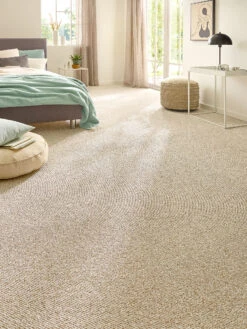 Die Oberflächenstruktur und die ausgewählte Farbgebung verleihen diesem Schlingen-Teppichboden die natürliche Ästhetik. Der Flor ist aus einer pflegeleichten und strapazierfähigen Spezialfaser. Zum hervorragenden Wohnkomfort trägt auch der KIBEK-ComforTex-Vliesrücken bei. Antistatisch ausgerüstet und für Fußbodenheizung geeignet.