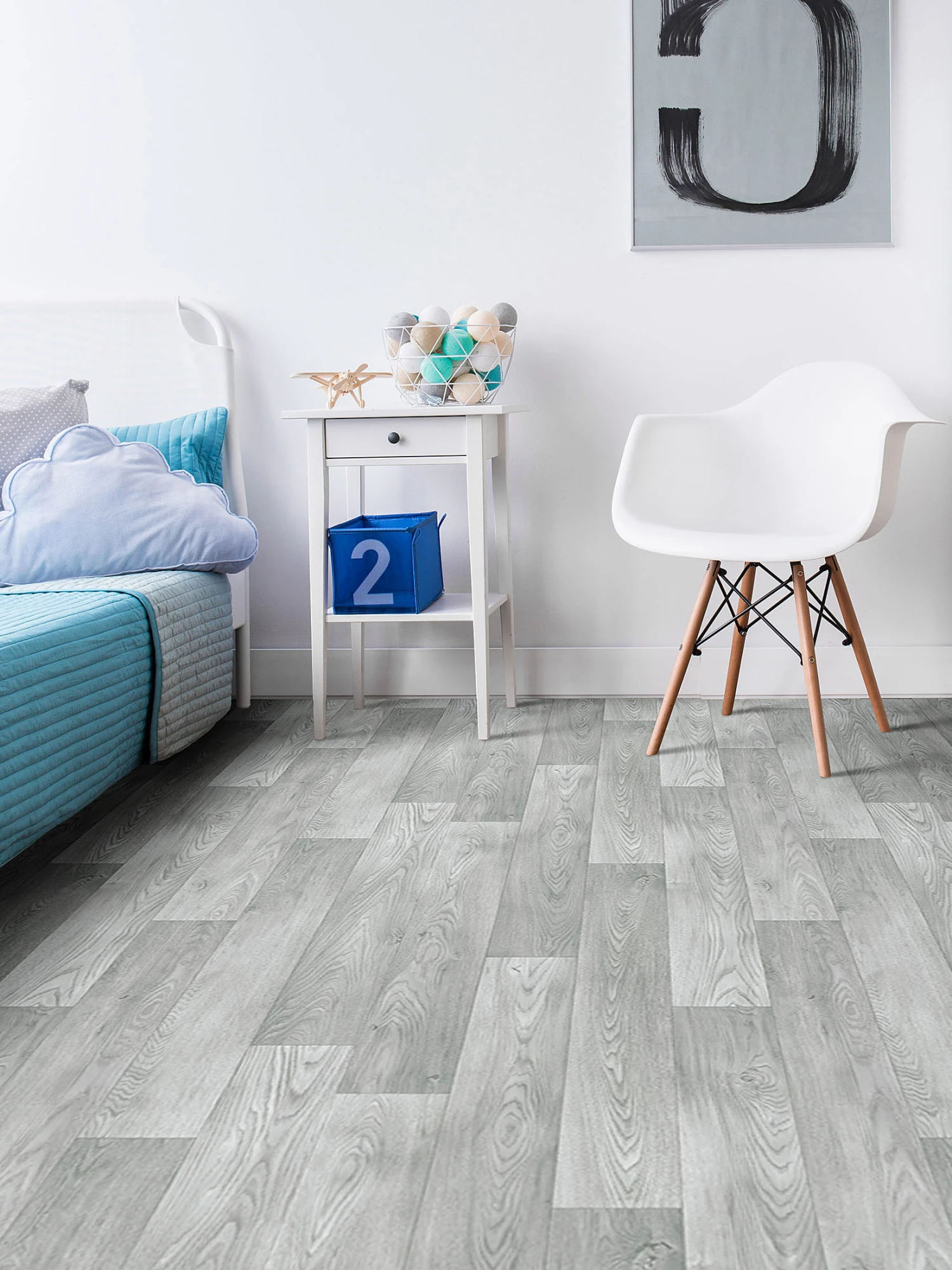 Holzdekore, die wie echte Holzdielen aussehen. Nur dieser Vinyl-Bodenbelag lässt sich leichter verlegen. Er ist strapazierfähig (Klasse 22), leicht zu pflegen und für Räume mit Fußbodenheizung geeignet.