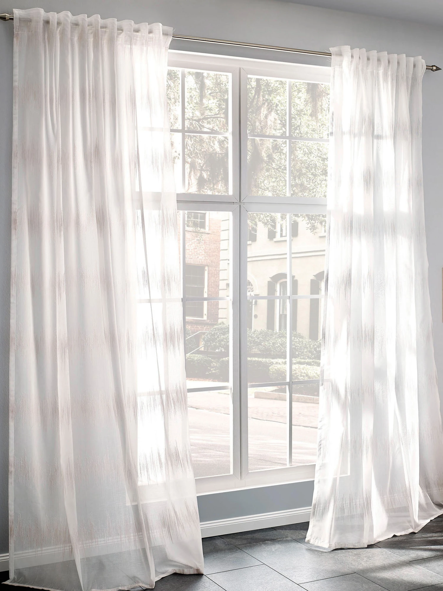 Vorhang mit verdeckter Schlaufe. Für Stange und Schiene geeignet. Garngefärbt. Oeko-Tex Standard 100.